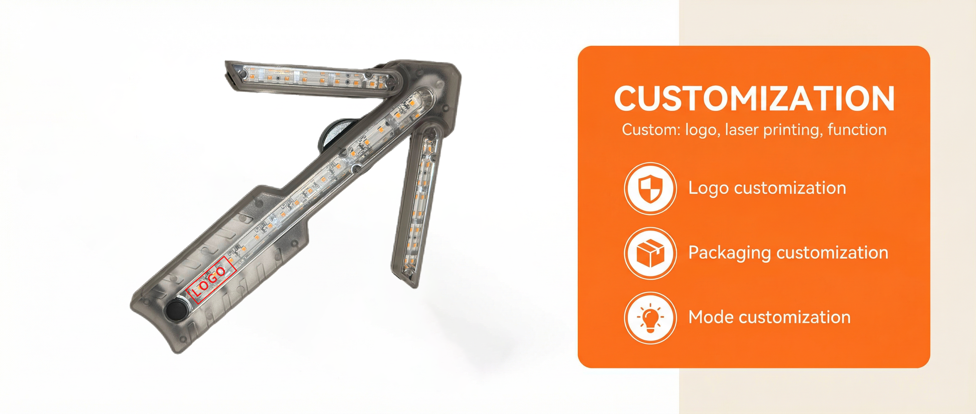 Logo Customization – Silk screen or laser printing on light body or package.